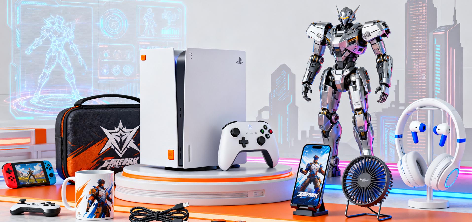 全面覆盖游戏主机与配件, 从经典怀旧的主机到最新一代的PS5、Xbox、Switch,以及手柄、充电底座、扩展硬盘等全系列配件。